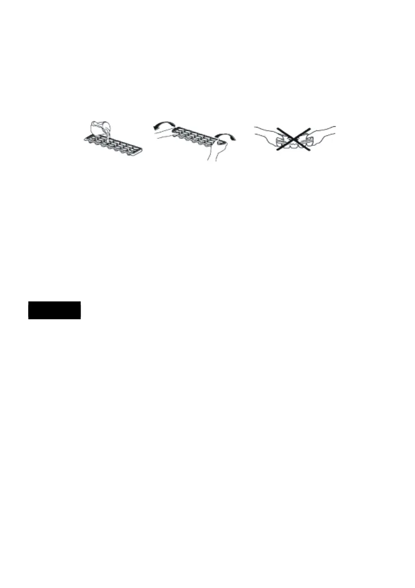 • After about 3 hours Ice cubes will form, you can then remove them by holding the tray