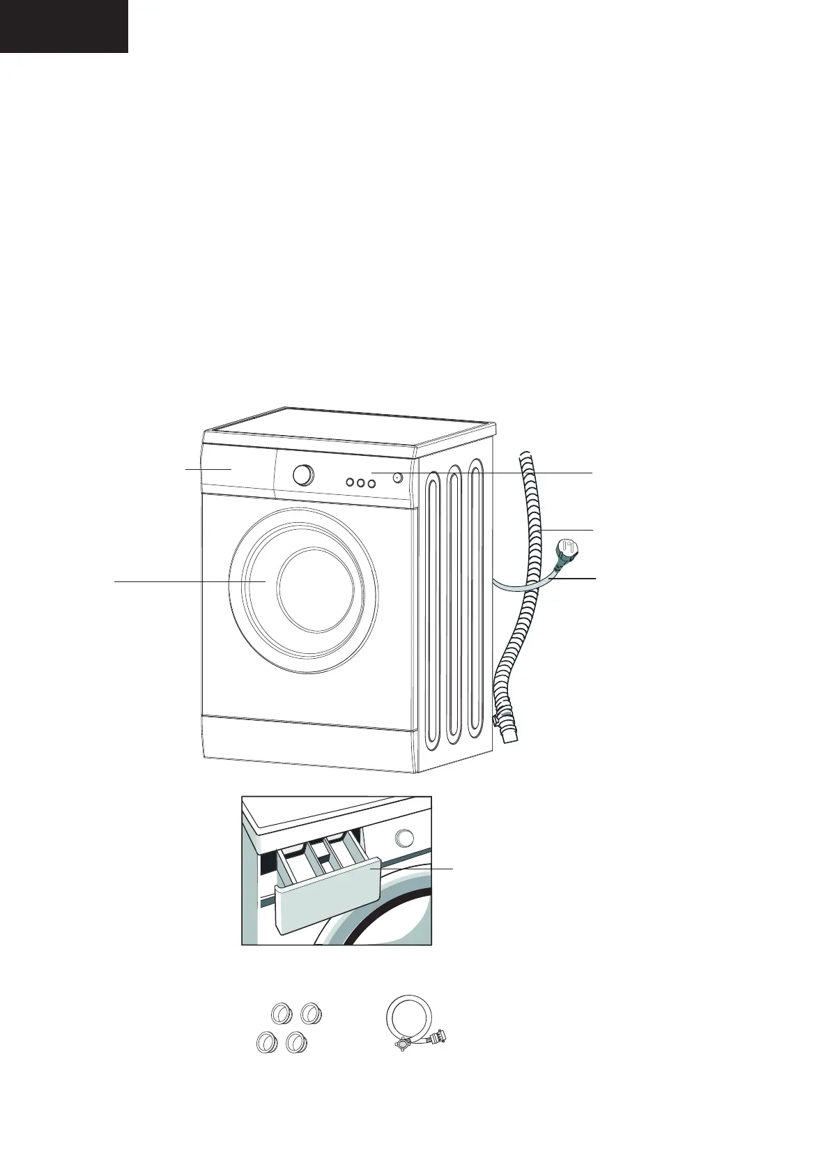 - The glass door becomes very hot during the washing cycle. Keep children and pets