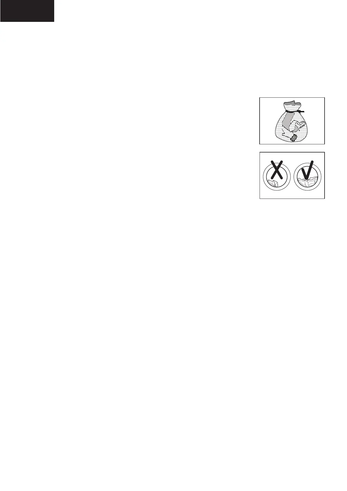 -Do not wash materials (ski suits, outside napkin pads, raincoats, umbrella,