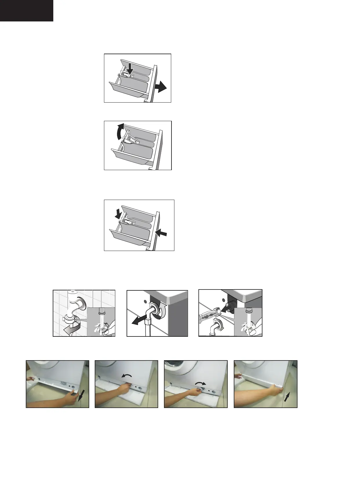 1.Press the release lever inside of the detergent drawer and pull it out.