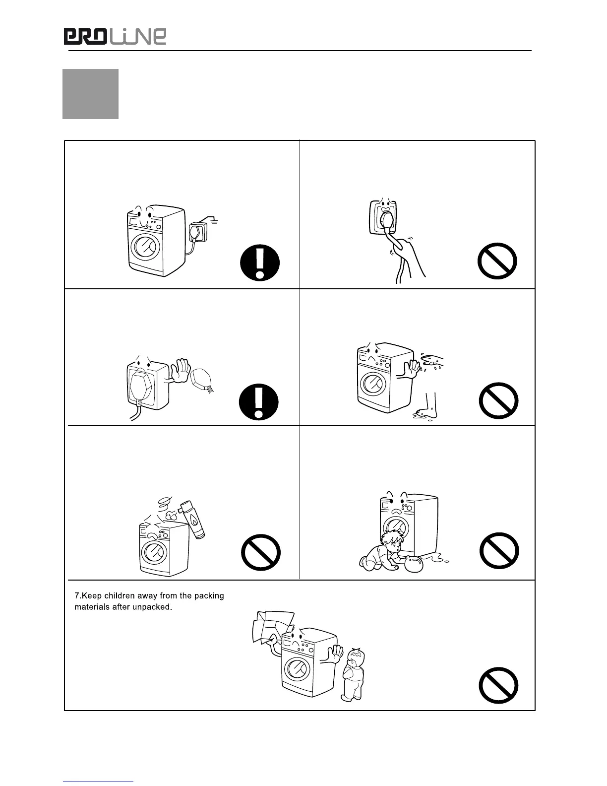 4. Do not touch or use the washing machine bare-