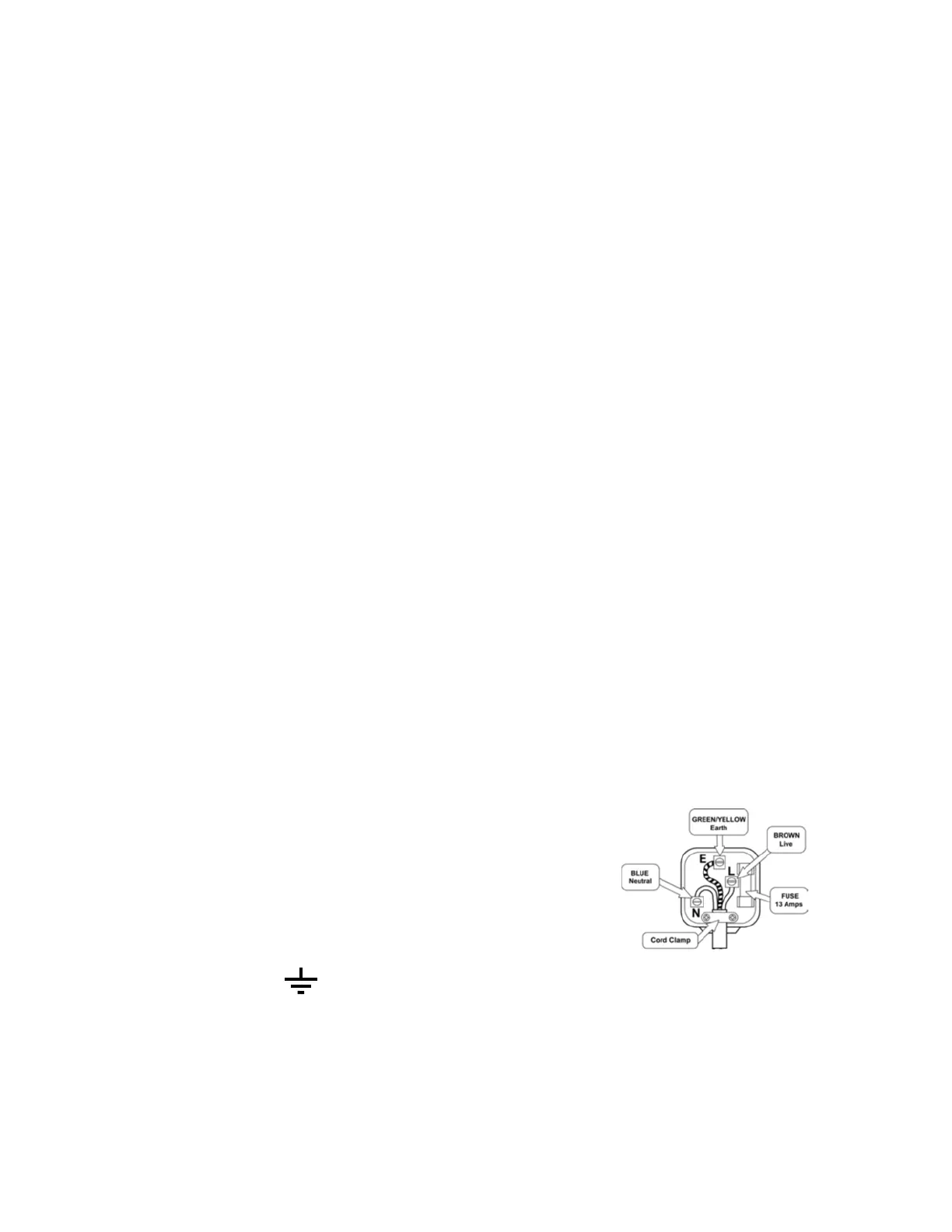 The appliance is supplied with a rewireable 13 amp 3 pin plug fitted with a 13 amp fuse.
