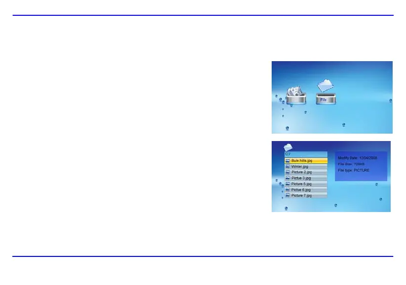 In the File mode, you can view all playable files and folders on the memory source. You also can copy files from a memory device to another memory