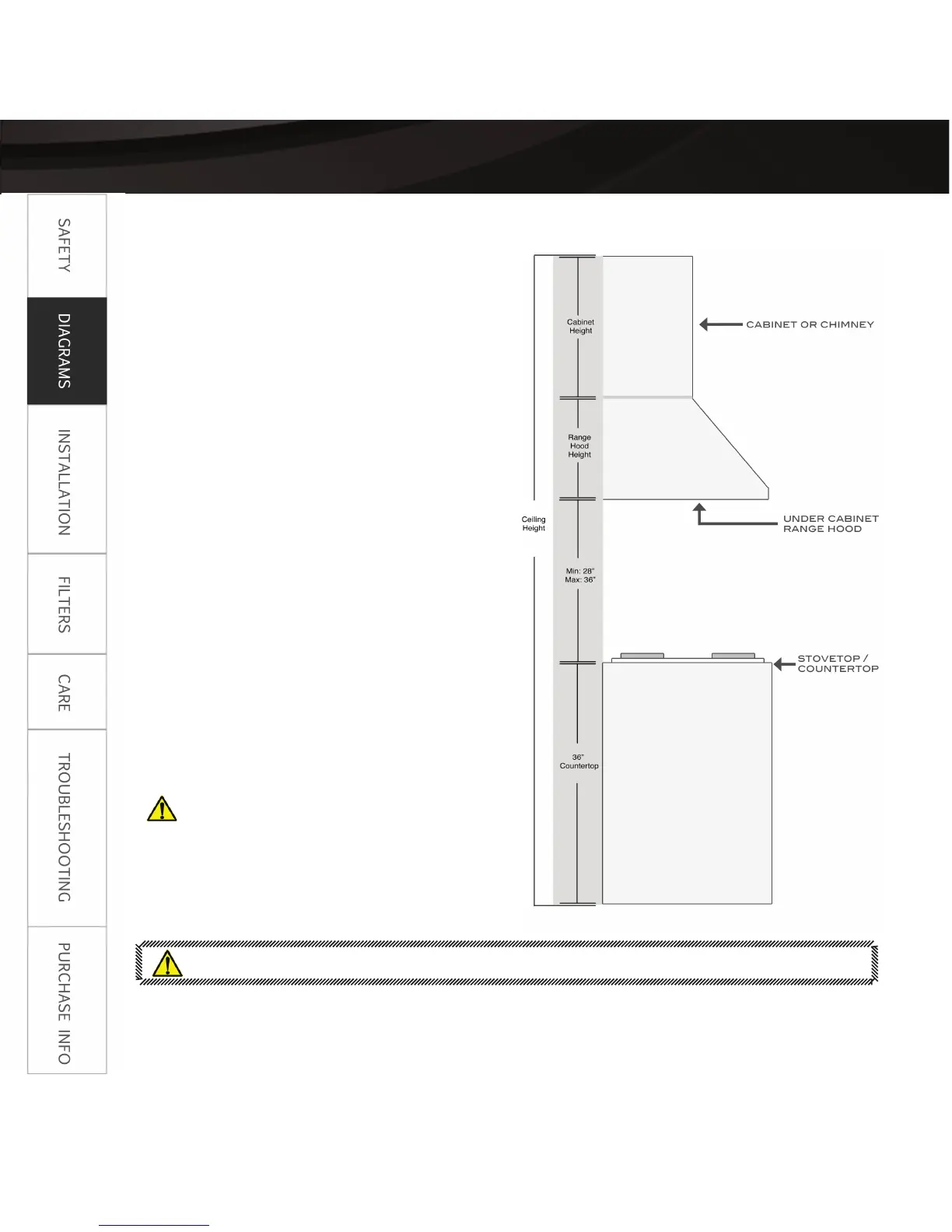 low could result in heat damage and fire hazard. Hoods mounted too high will be