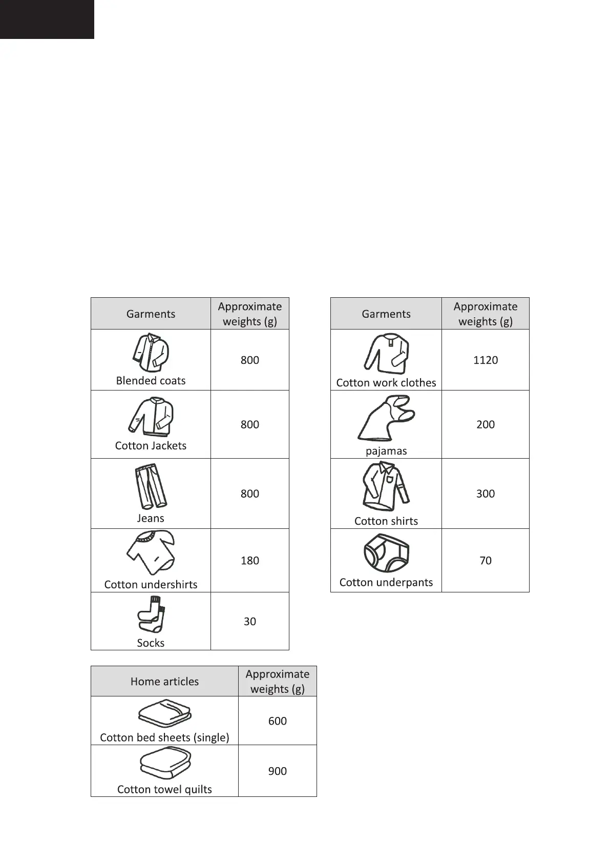 Following weights are given only for reference.