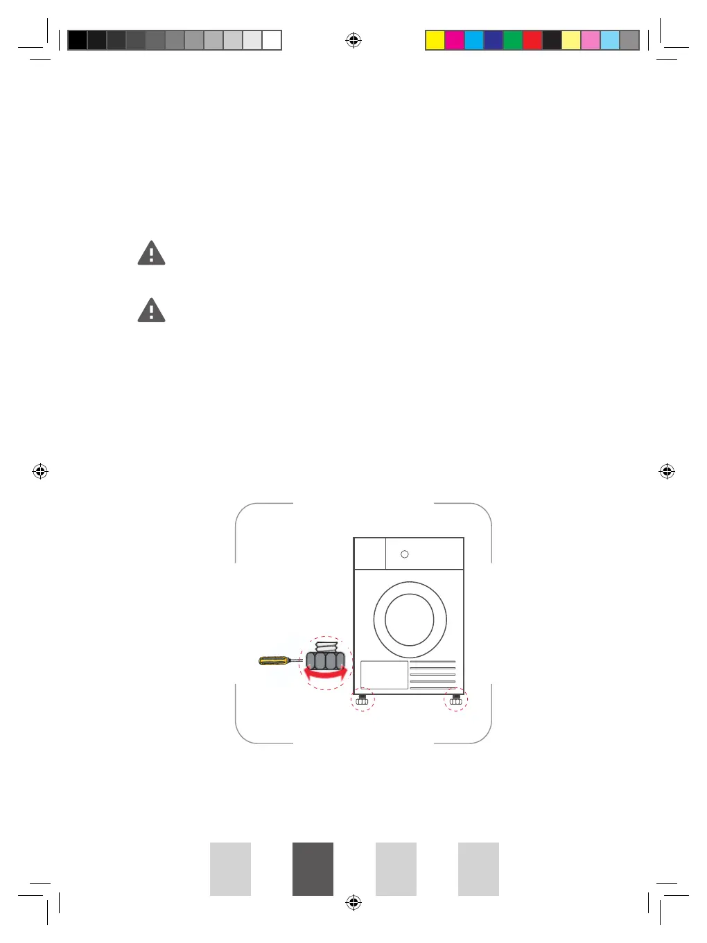 Als de droogtrommel niet perfect vlak staat, pas de stelvoetjes aan zoals vereist.