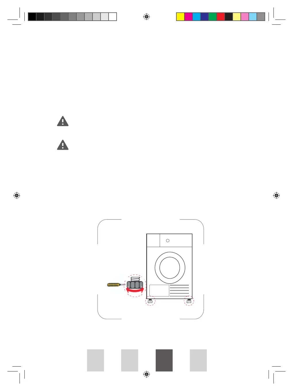 Se a máquina de secar não estiver bem nivelada, ajuste os pés de nivelamento,