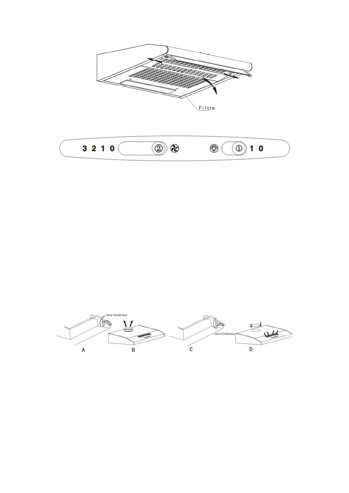 installez la sortie d'air et ouvrez la hotte. L'air aspiré est renvoyé à l'intérieur.