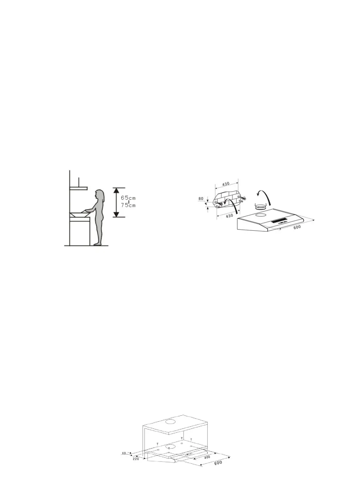 4.1 Odsávač par musí být umístěn 65 cm nad varnou plochou elektrické plotny nebo 75 cm nad varnou plochou