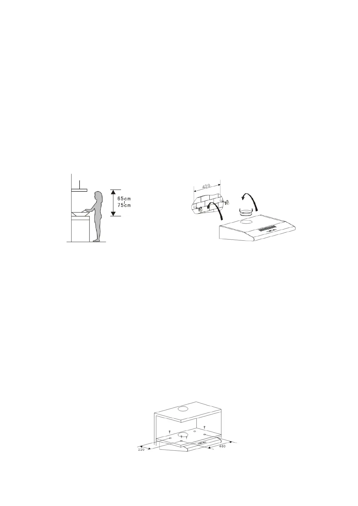 4.1 Après installation, la hotte doit se trouver à au moins 65 cm de la plaque de cuisson