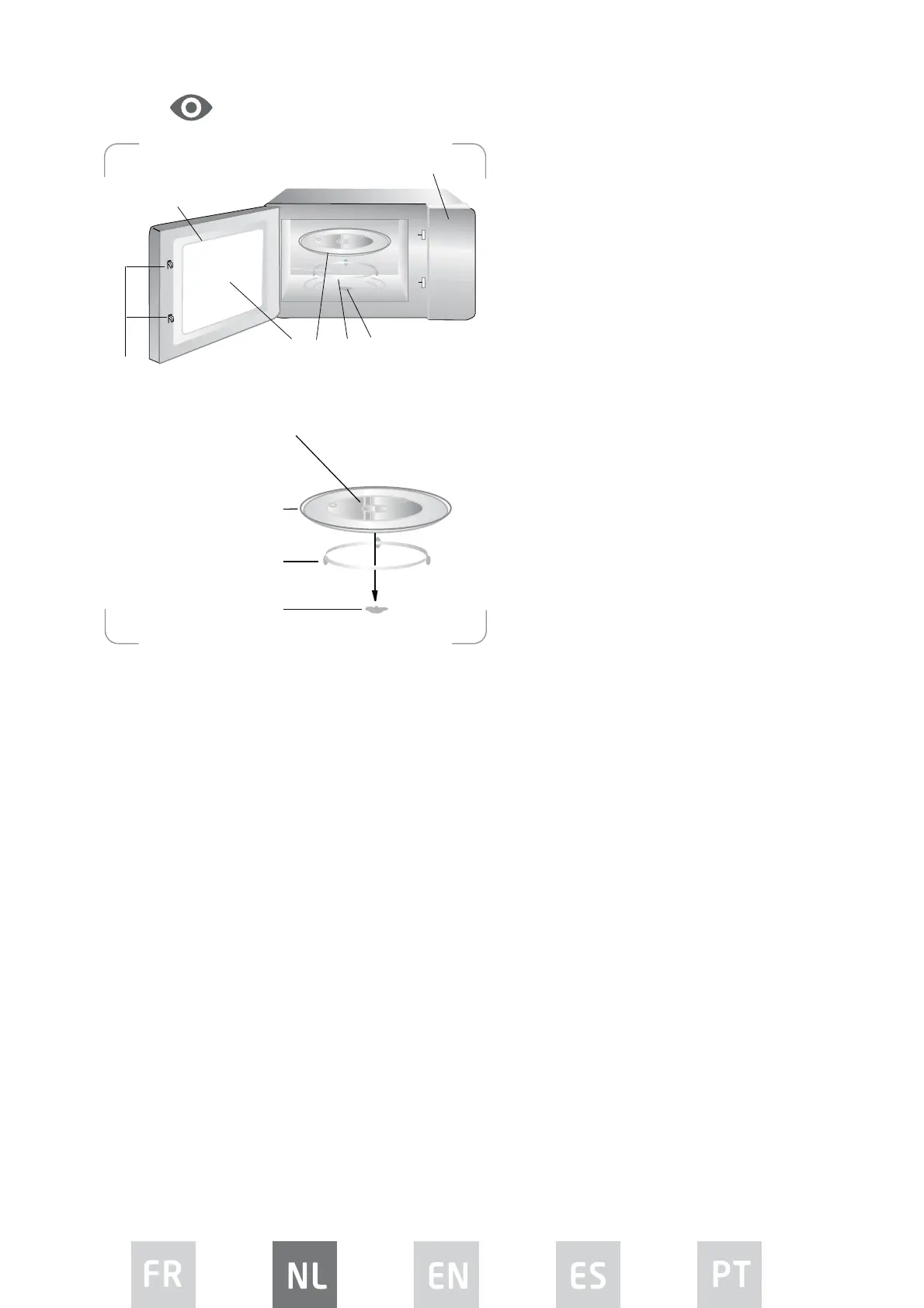 • Installeer het glazen draaiplateau nooit ondersteboven. Belemmer nooit het