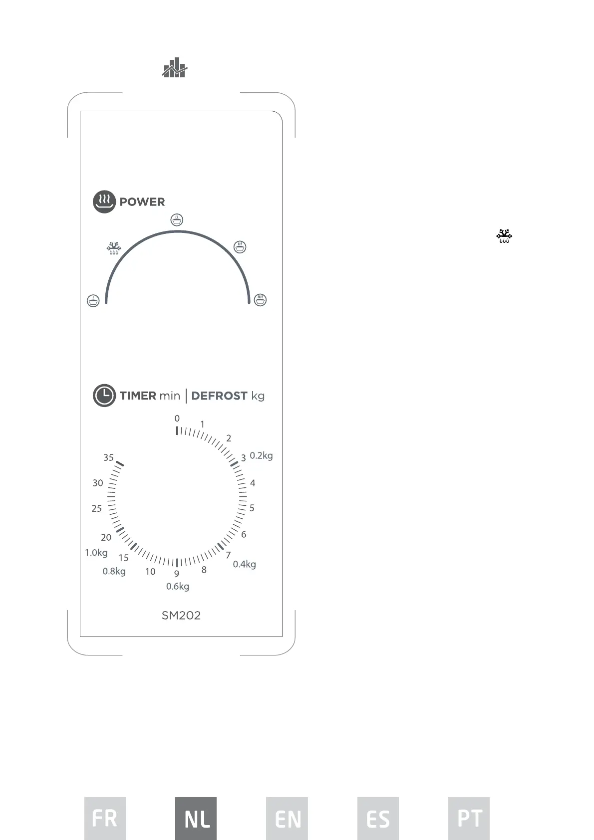 3. Om voedsel te ontdooien, draai de aan/