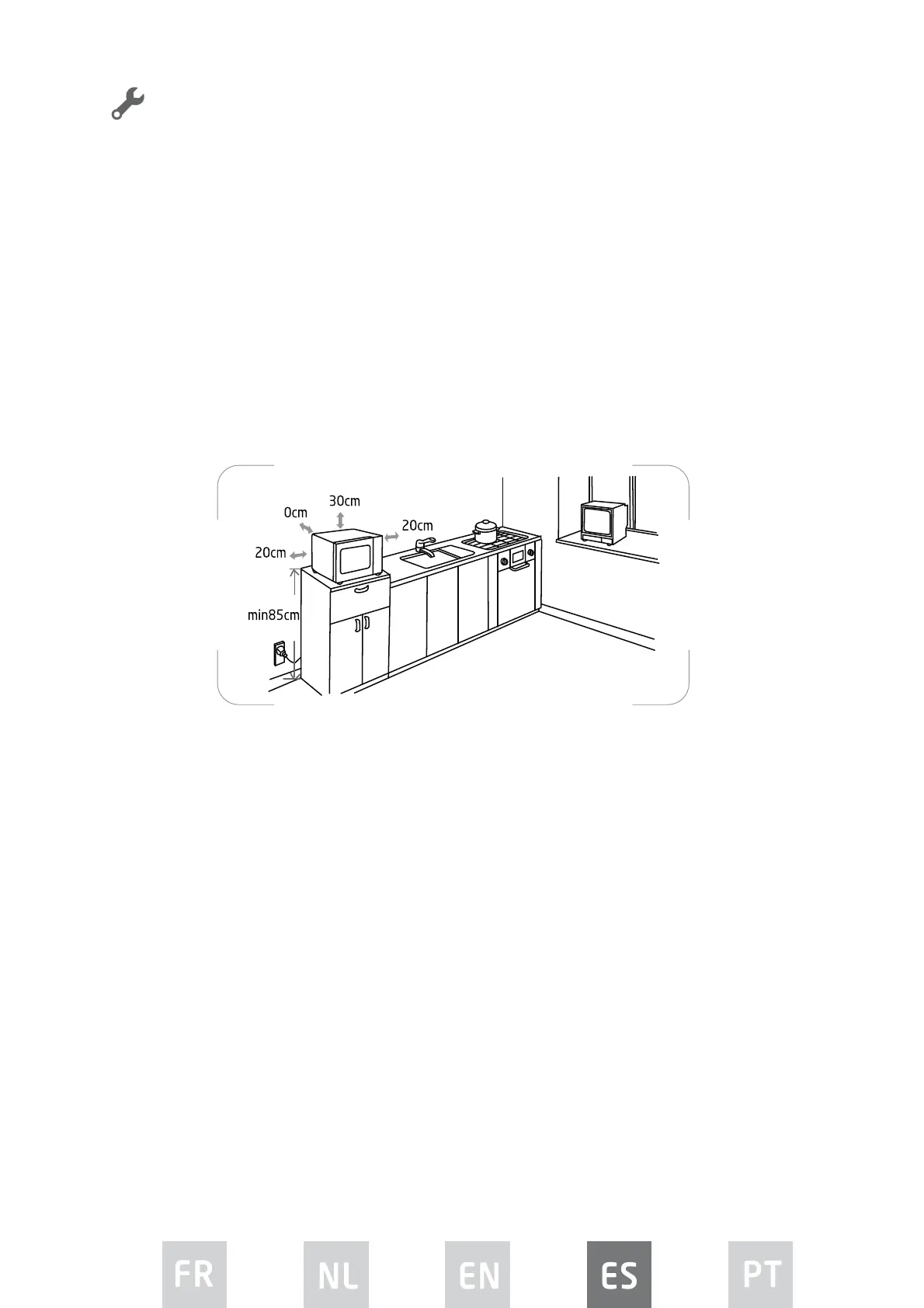 • Debe dejarse una distancia mínima de 20 cm a ambos lados del horno.
