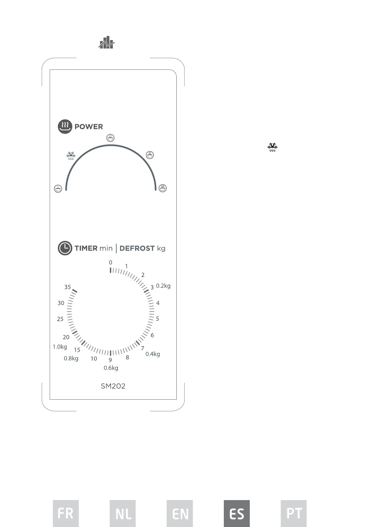 selector de potencia y descongelación.