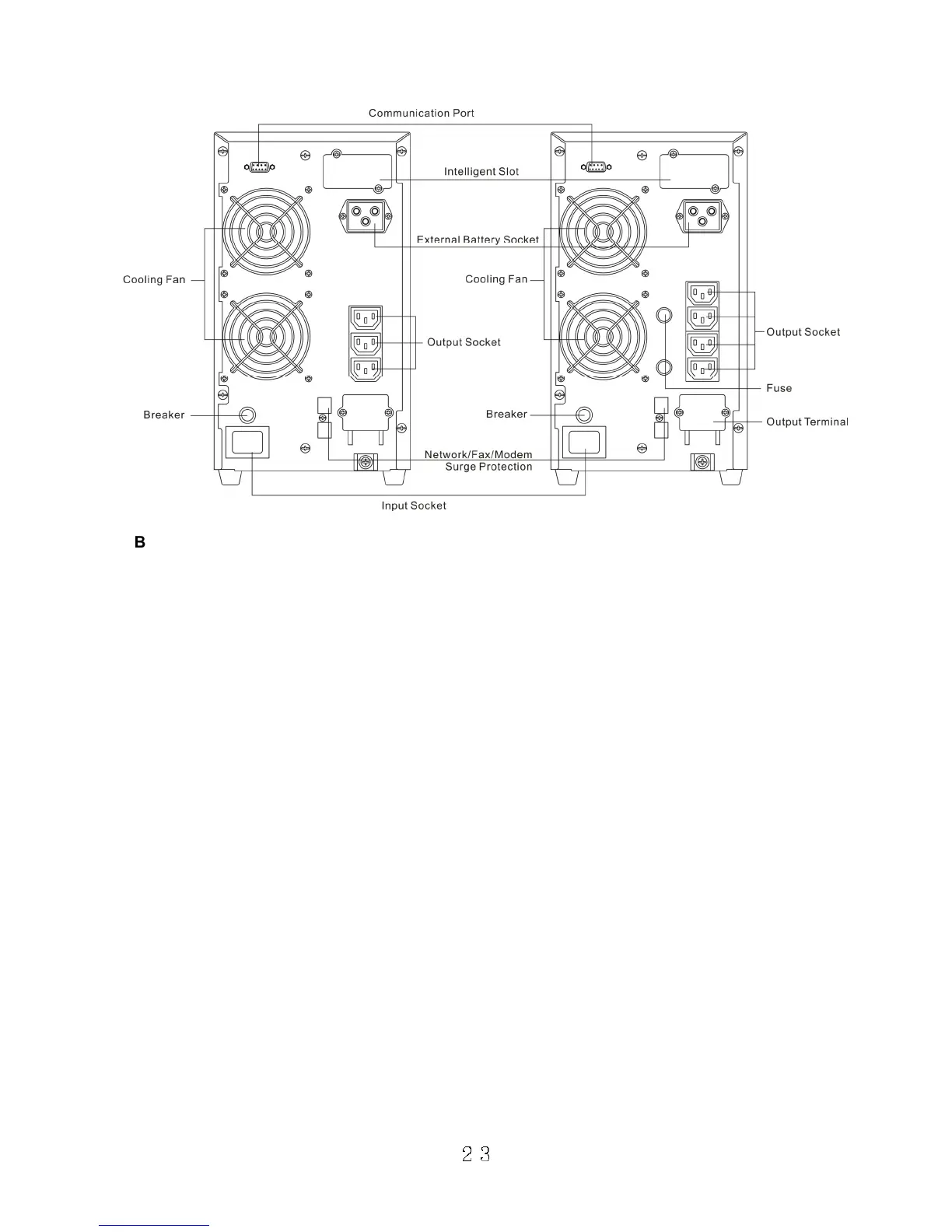 Back View of UPS T3000(S) Non CE-certified Back View of UPS T3000(S) CE-certified