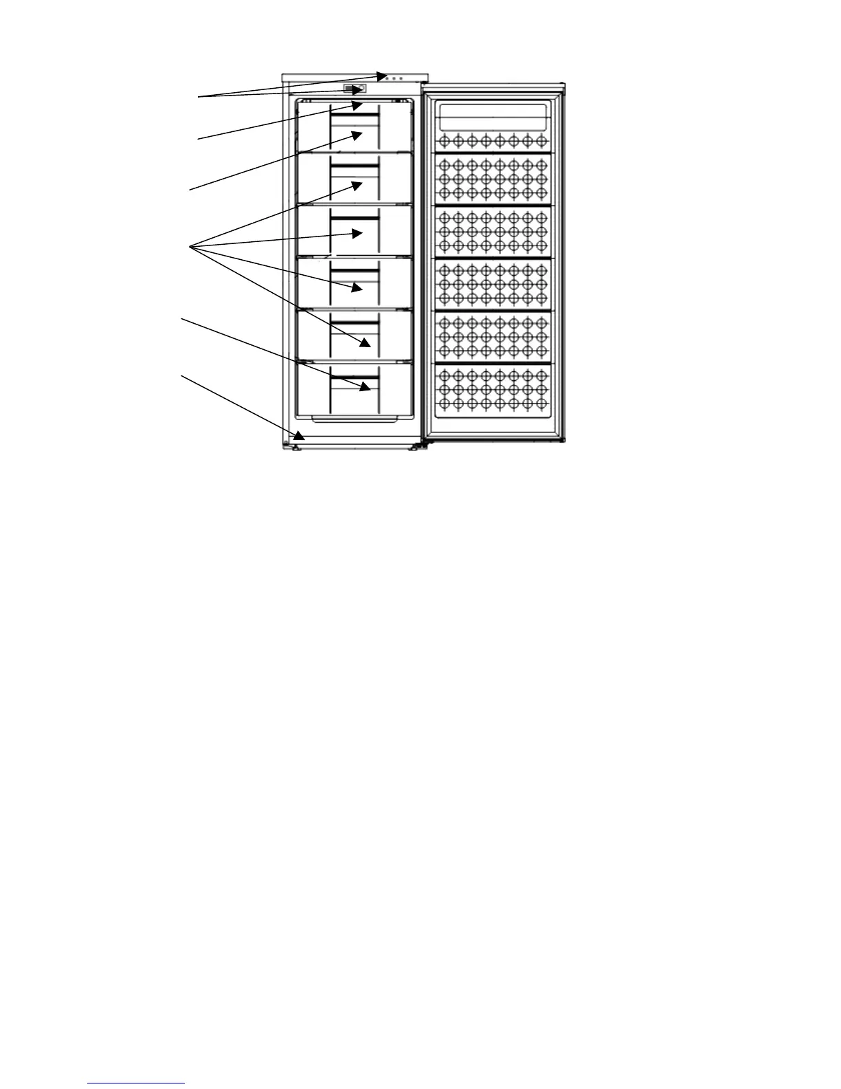 sides, top, and back of the freezer.
