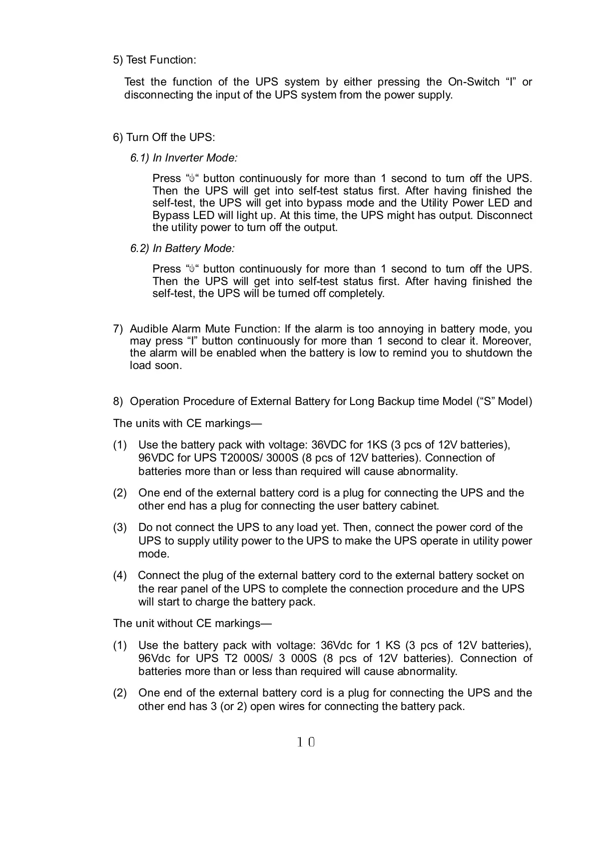 8) Operation Procedure of External Battery for Long Backup time Model (“S” Model)
