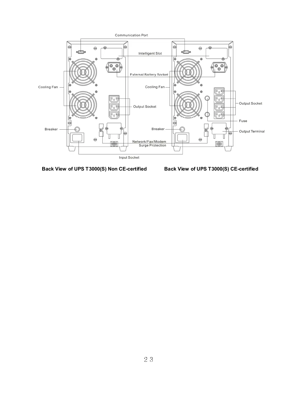Back View of UPS T3000(S) Non CE-certified Back View of UPS T3000(S) CE-certified
