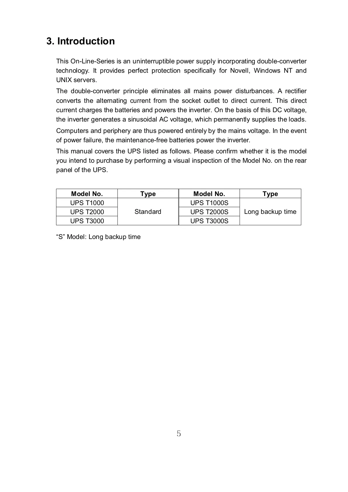 This manual covers the UPS listed as follows. Please confirm whether it is the model