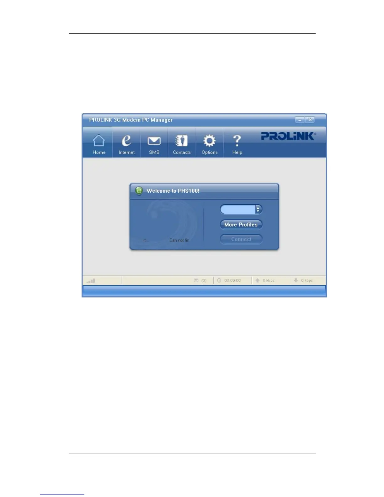 Here’s the main window of data card’s PROLINK HSDPA Modem PC Manager: