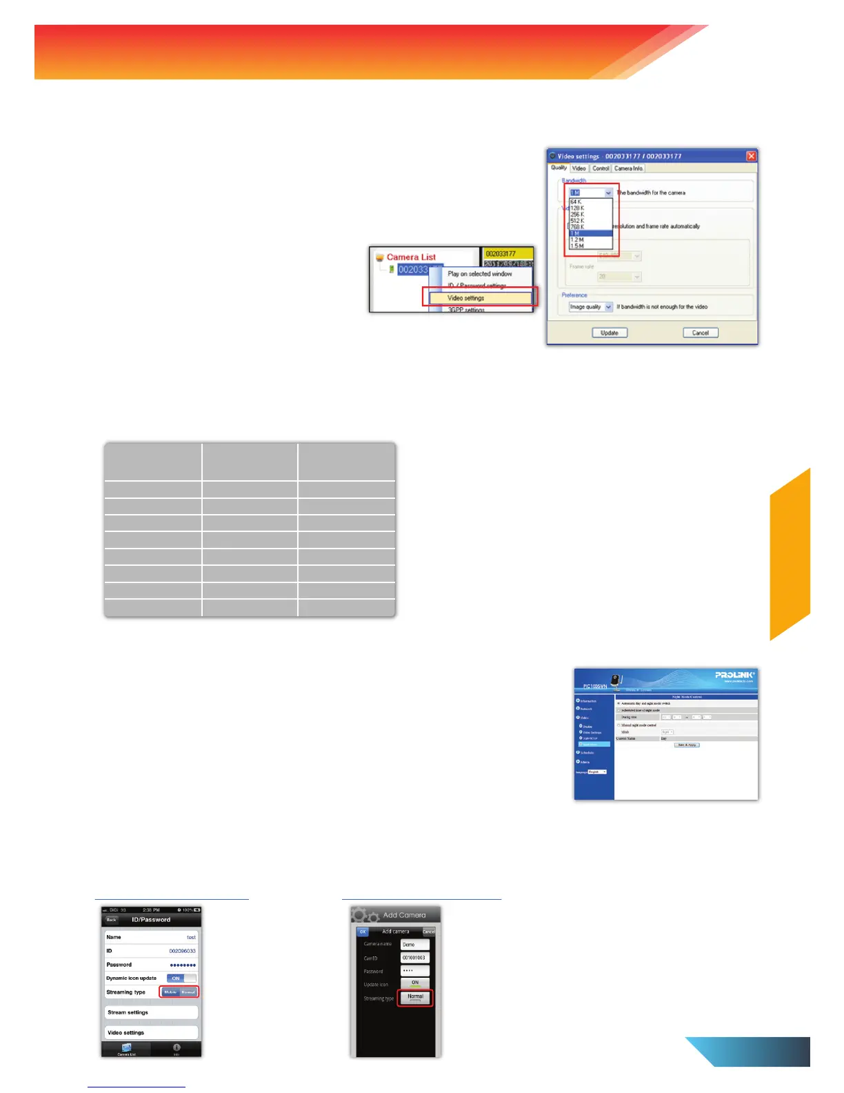 Chỉnh sửa CamID/Mật khẩu và chọn Streaming type cho Mobile thành Normal.