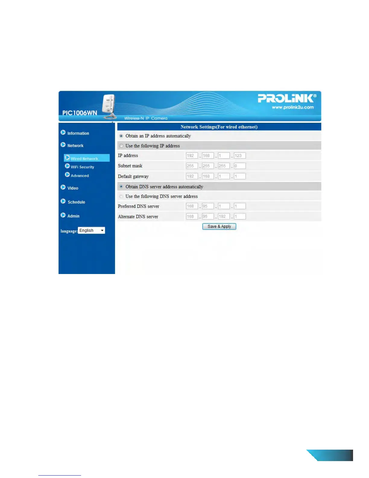 The Network page allows you to modify the network settings of the wired Ethernet. The default settings use