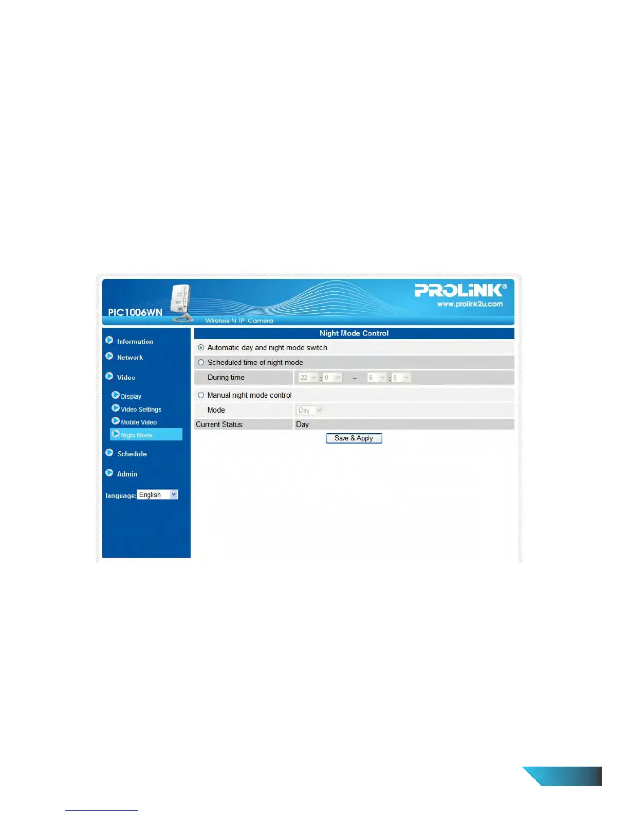 see the objects in the night time. This night mode control page is to control when the time the IR LEDs will be