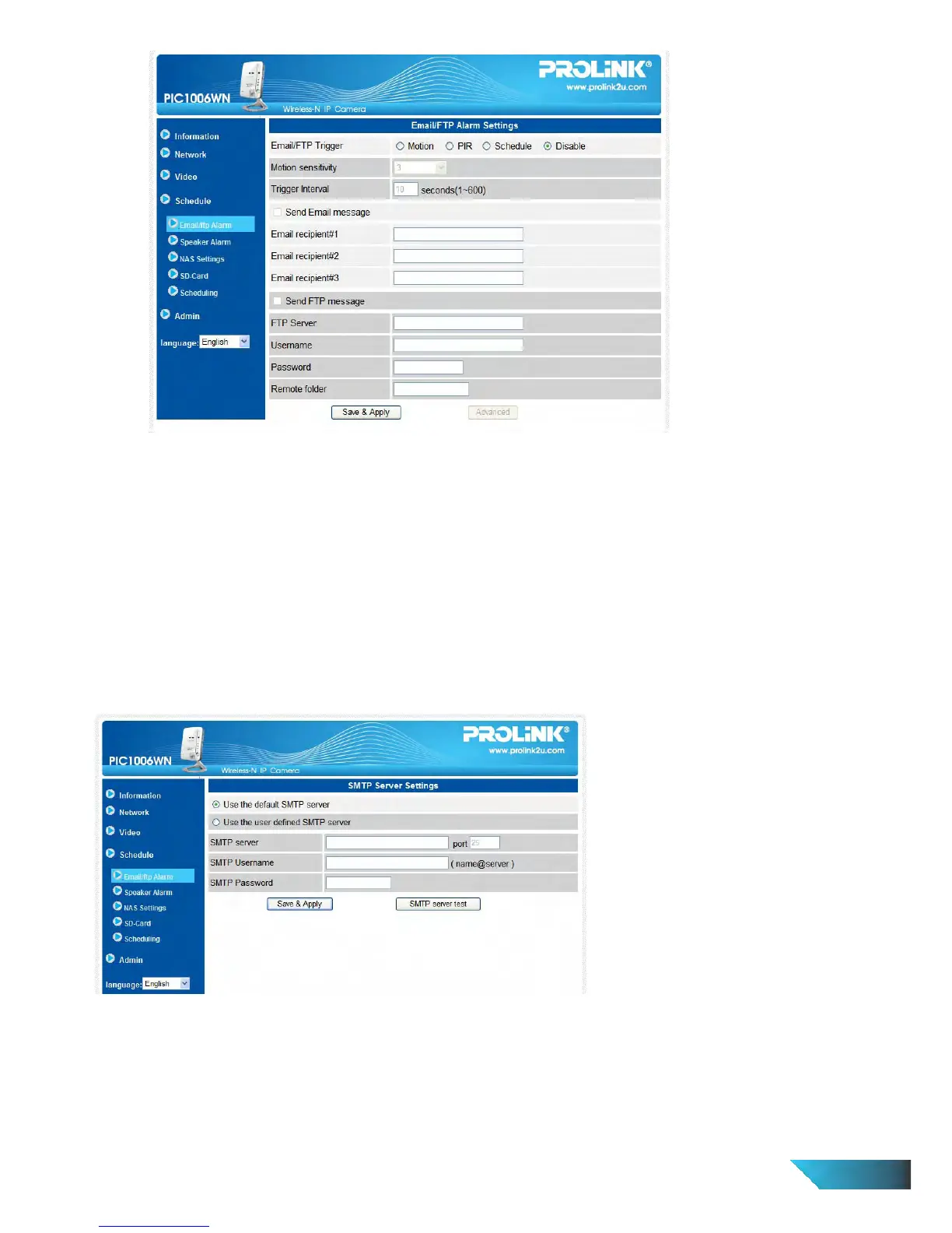 Figure 3-13: Email/FTP Alarm page