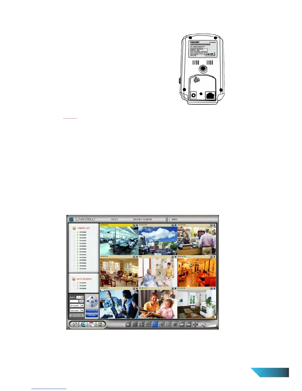 in the “CameraList” folder of the LiveView Software; key in the IP Camera ID and Password (refer to