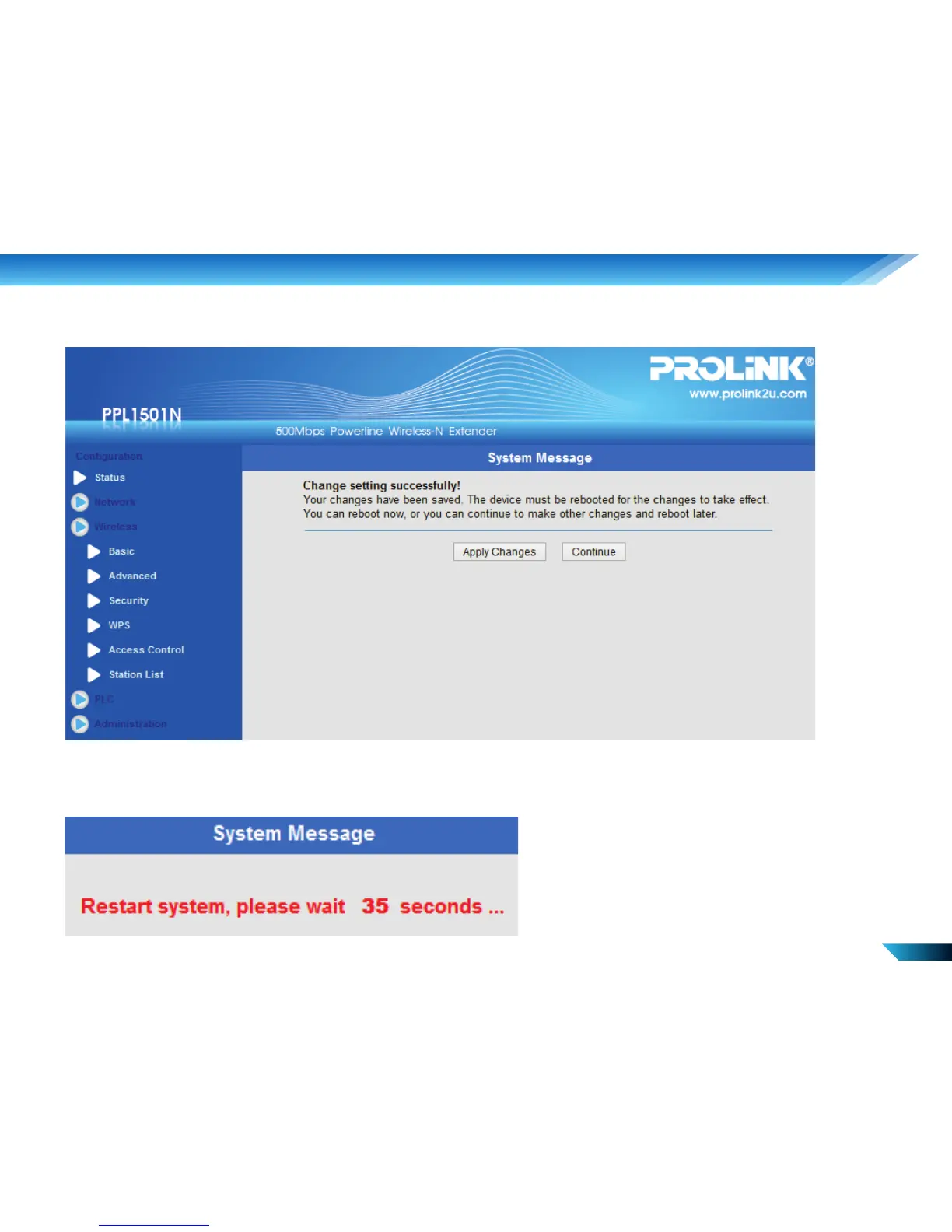 Step 3. Click on <Apply Changes> to reboot PPL1501N.