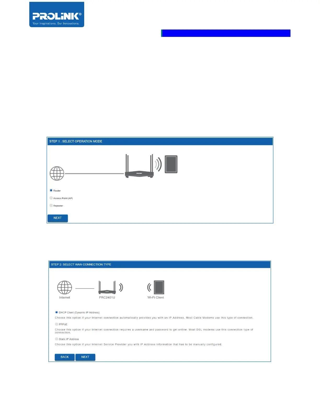 PROLiNK® PRC2401U come with three operation mode available for user choose base on network