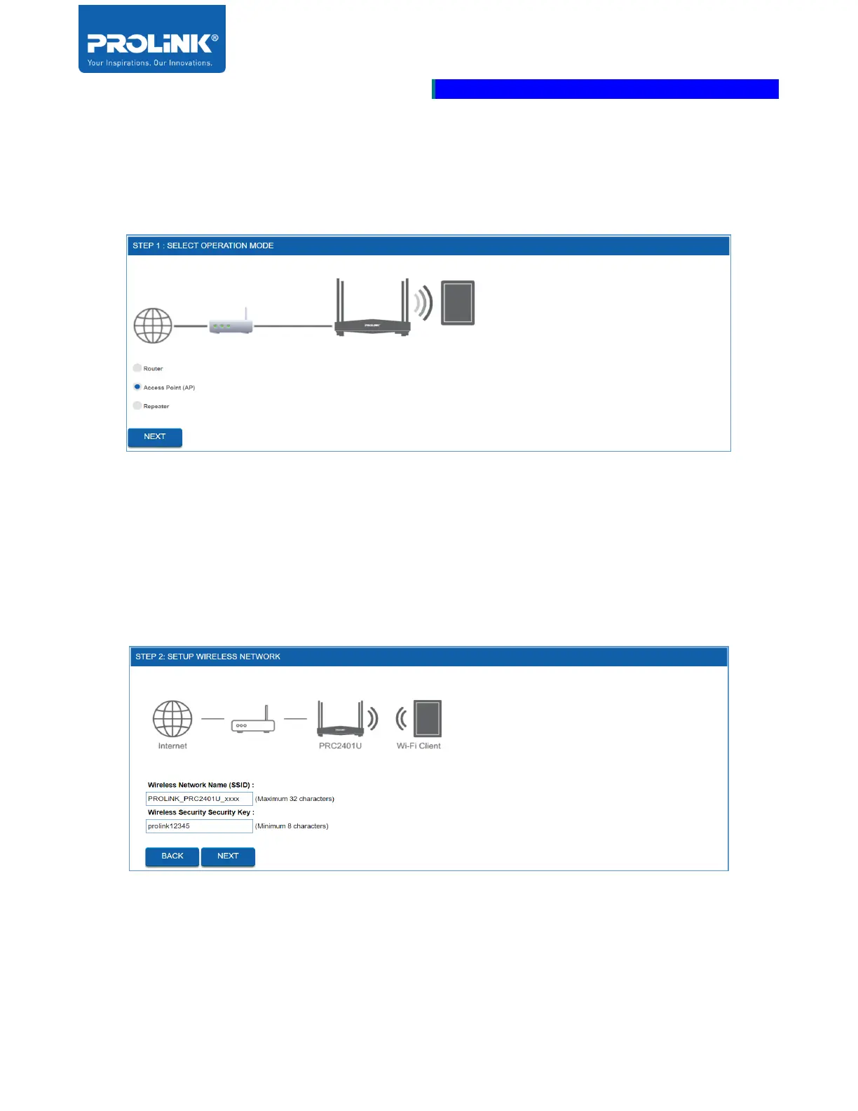 “PROLiNK_PRC2401U_xxxx” (xxxx is the MAC Address of the Network Interface) and,