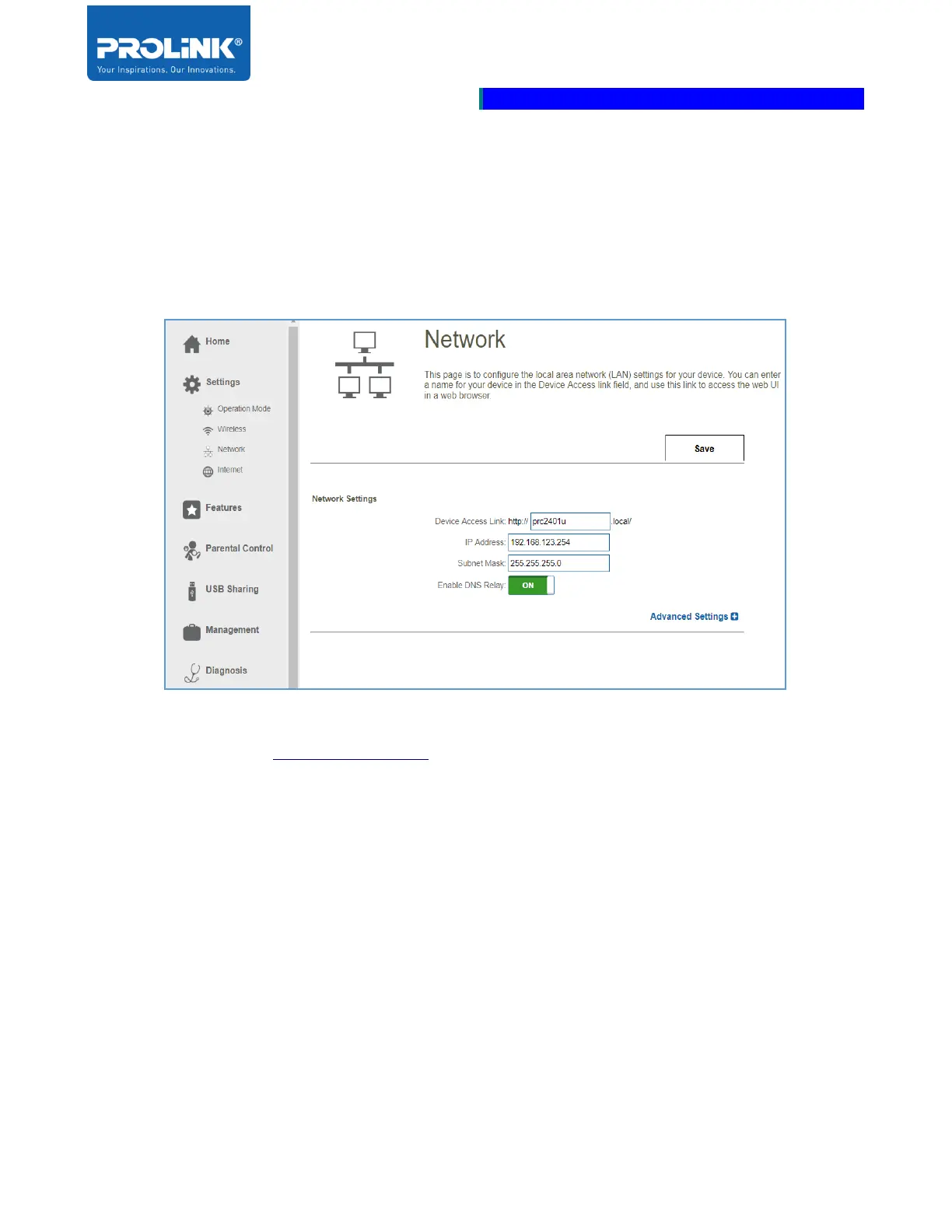 Network Page setting allows the user to change the local network settings of the router and enable the