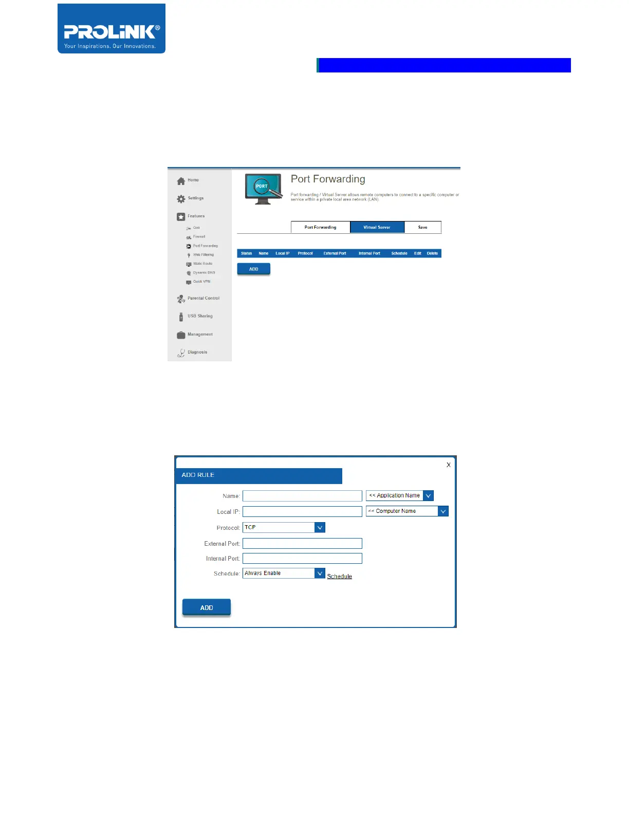 The Virtual Server allows you to specify a single public port for redirection to an internal LAN IP