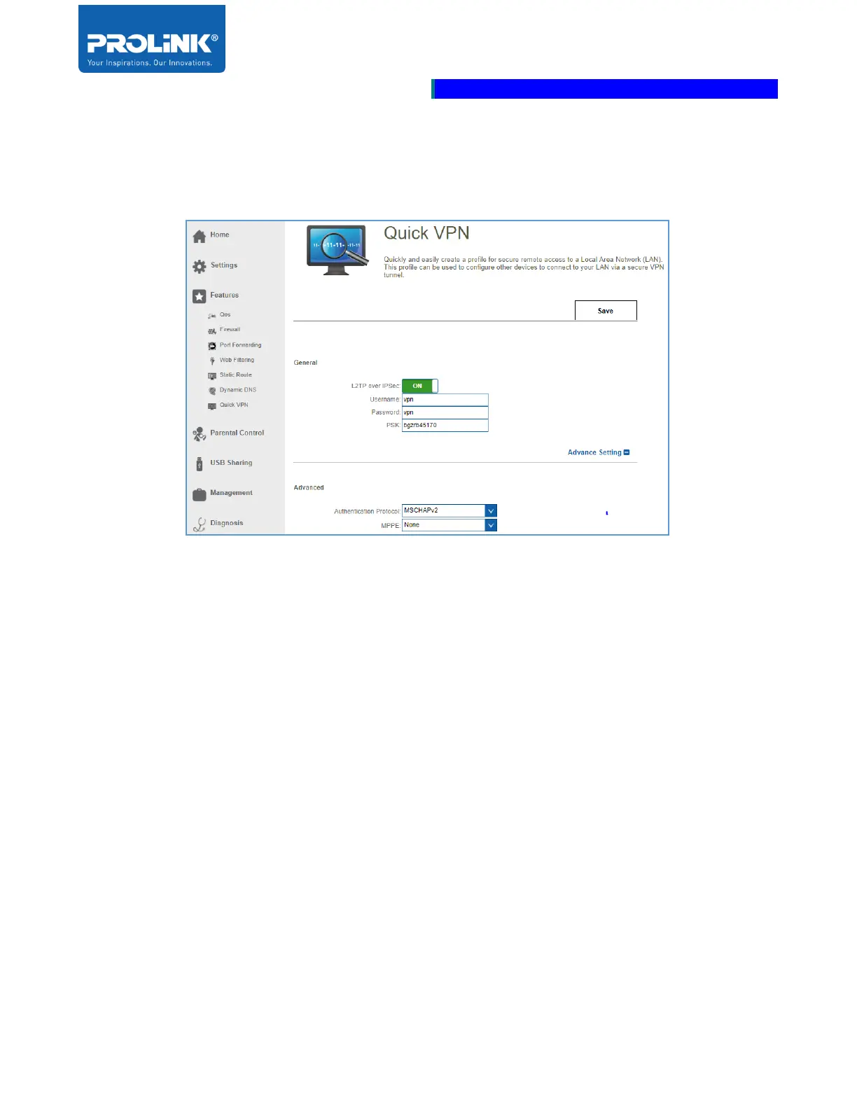 Note: The Quick VPN allows creation of One profile and supports up to 3 simultaneous VPN login