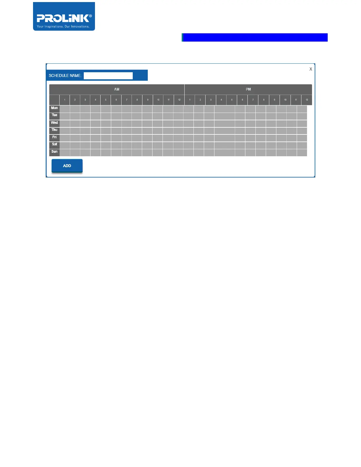 Day & Time: Highlight the gray box on the specific time and day to activate the schedule.