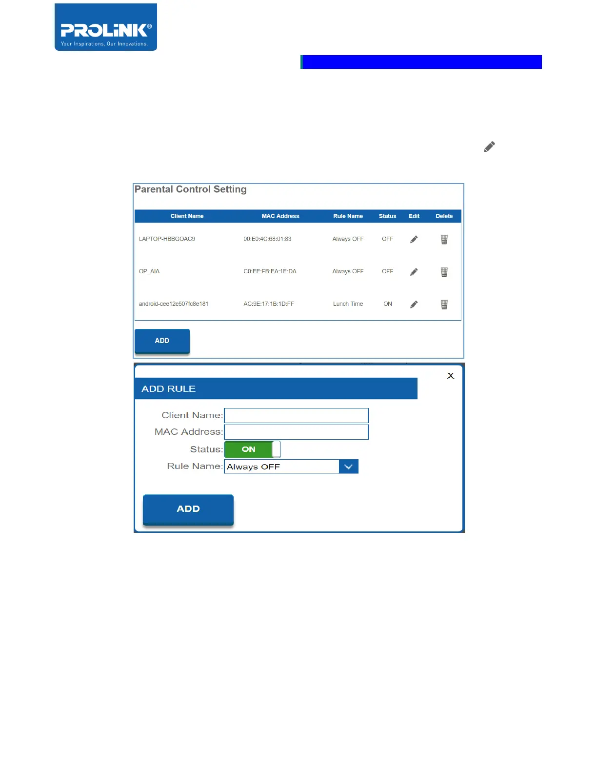 change the Parental Control status to ON to enable the Parental Control on the client.