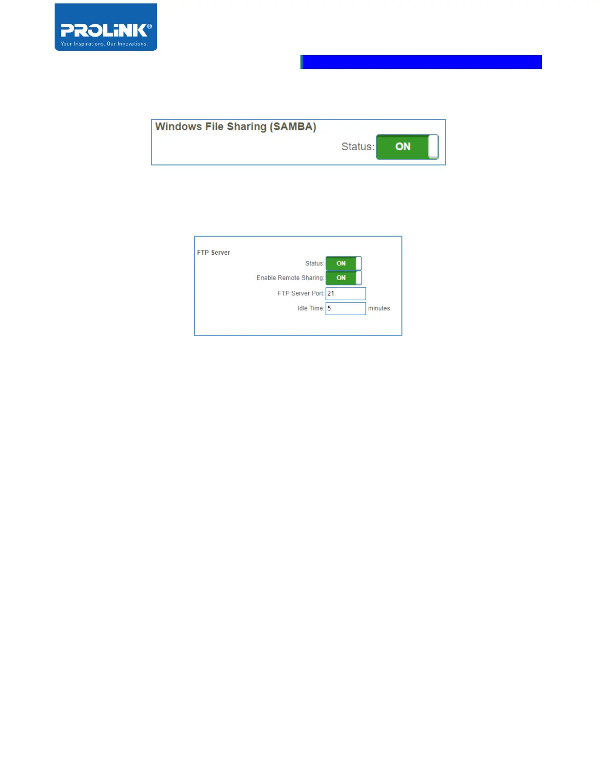 • Status: To enable and disable the local file sharing SAMBA over the local network.