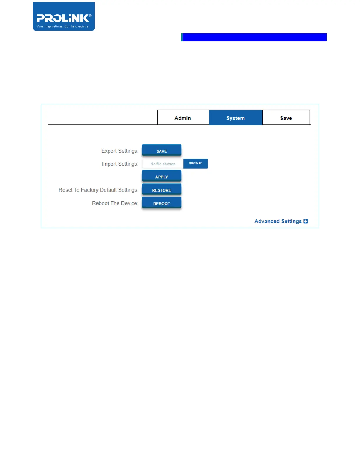 • Export Settings: Click SAVE to save the current router configuration settings to a file on your