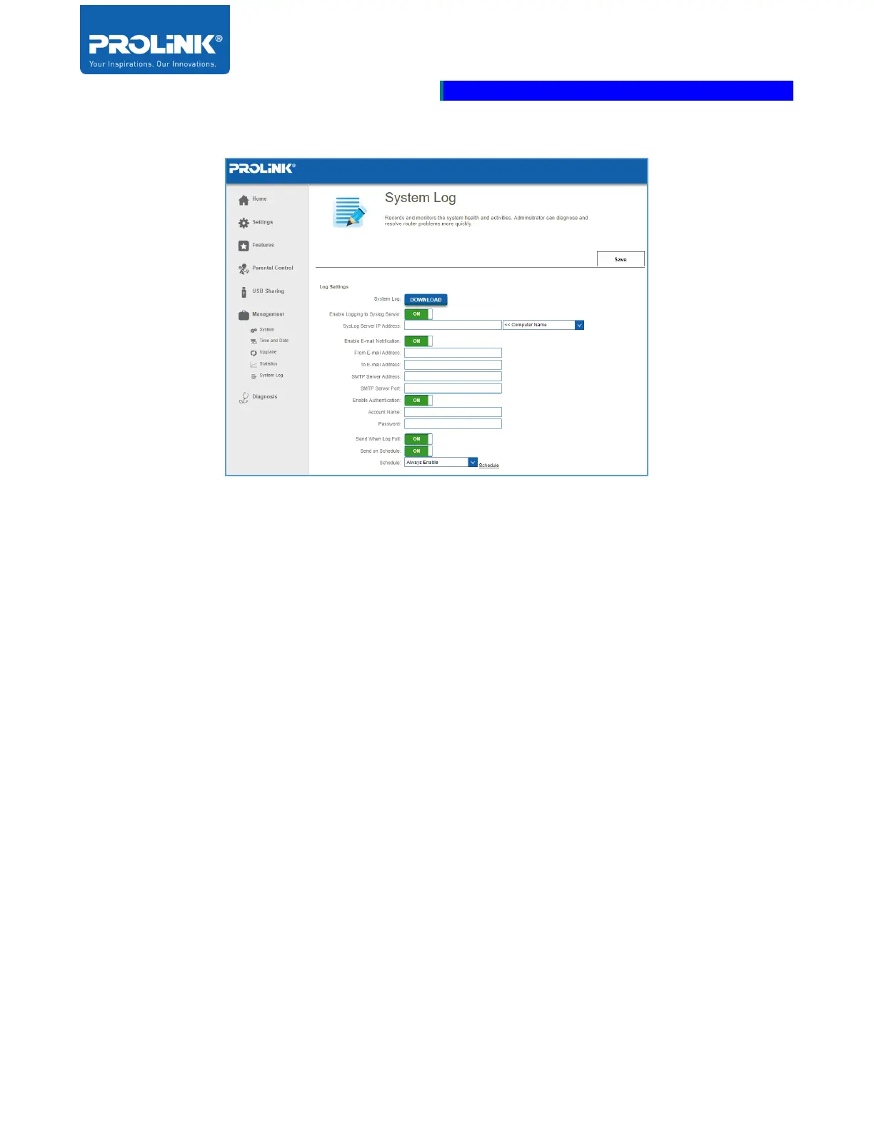 • Enable Logging to Syslog Server: Enable to send the router logs to a SysLog Server. If this is