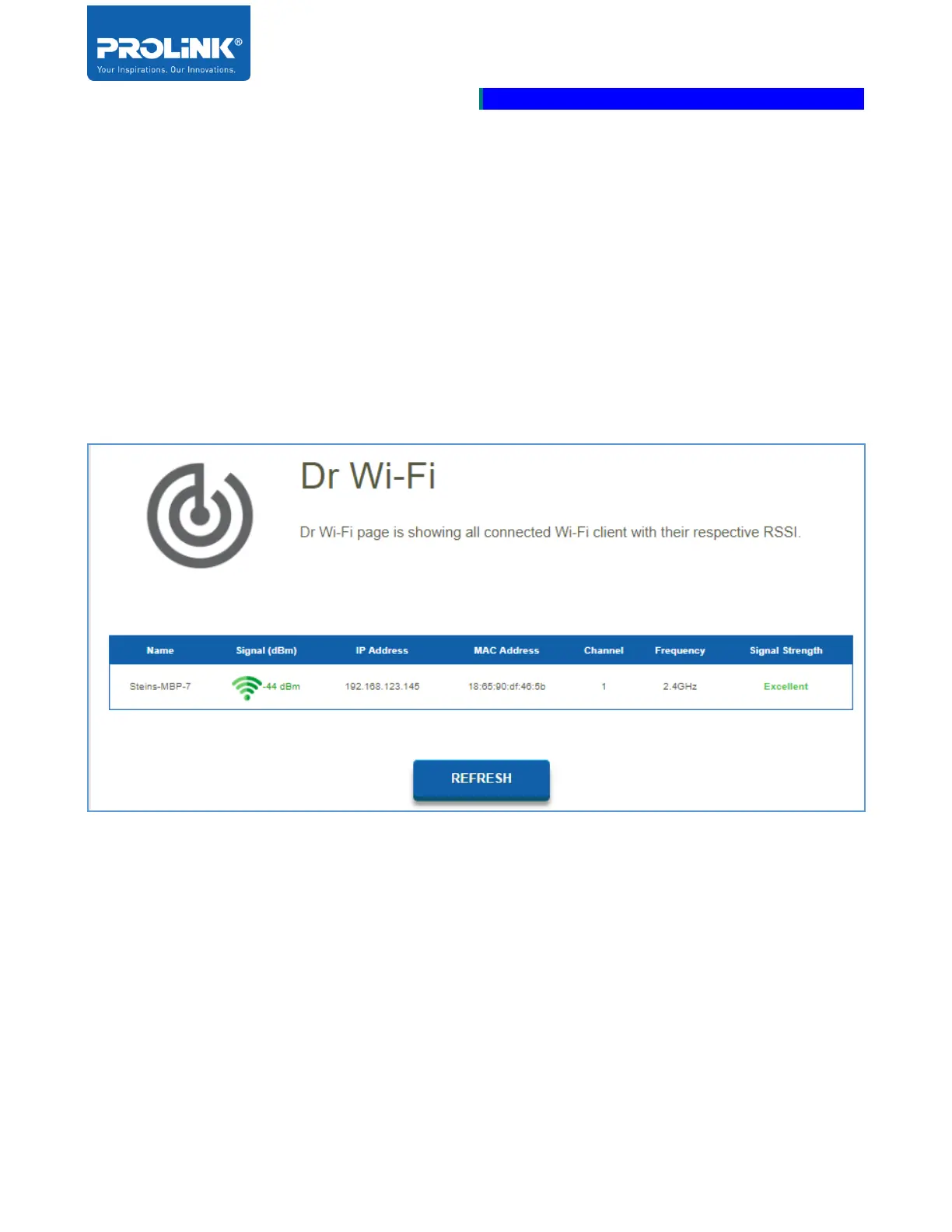 located, go to Diagnosis then click Dr Wi-Fi to view the page. Click REFRESH to update the Dr Wi-