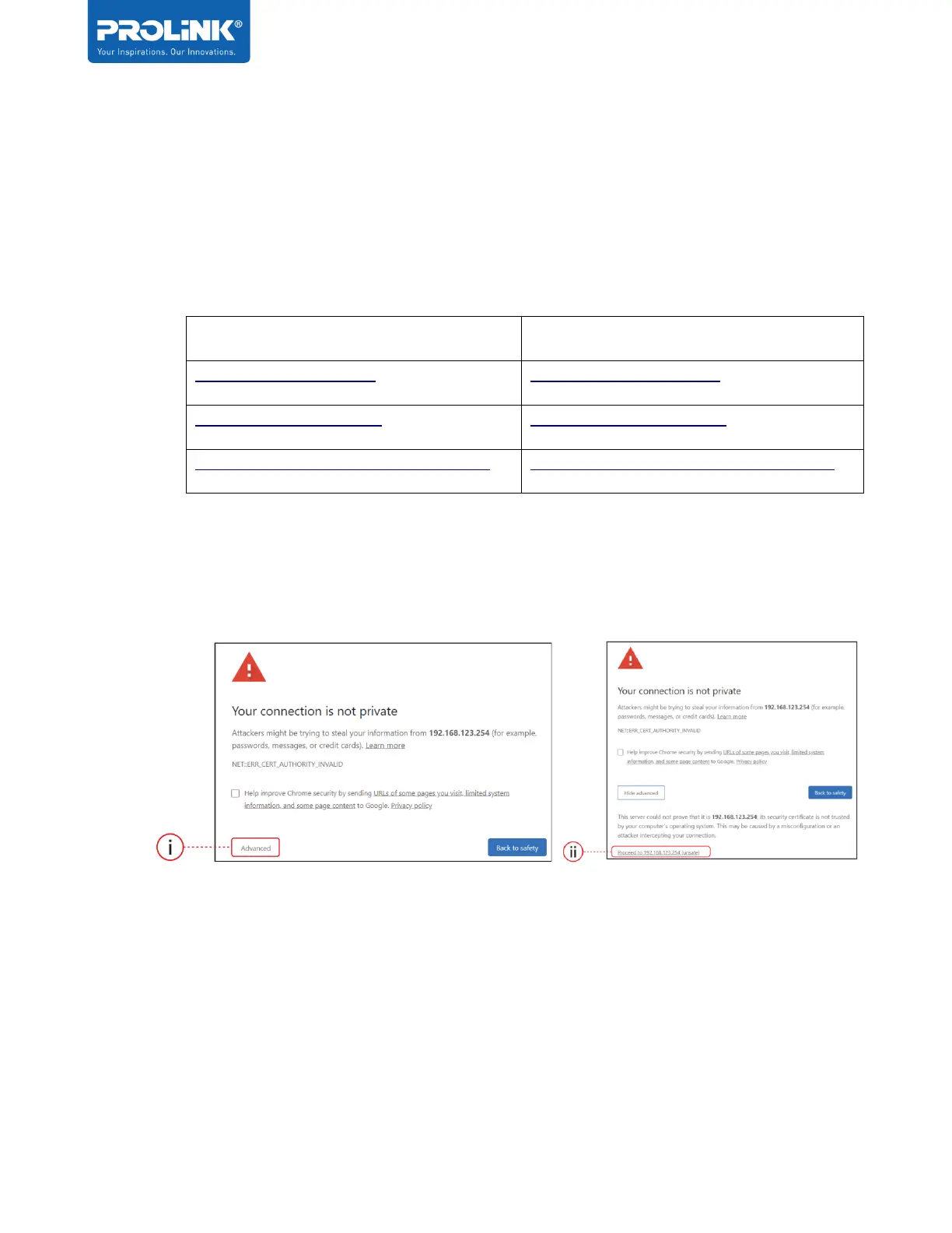 click on (i) Advanced, followed by (ii) Proceed to 192.168.123.254 (unsafe), as per