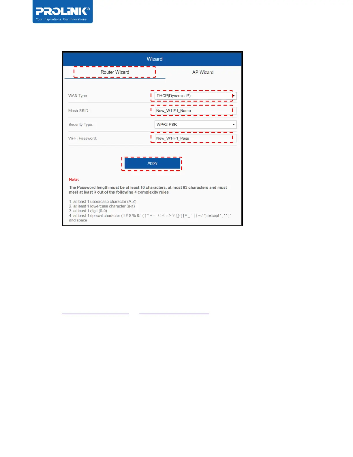 a. Set the new SSID (Default: PROLiNK_Mesh_XXXX), and new Wi-Fi password