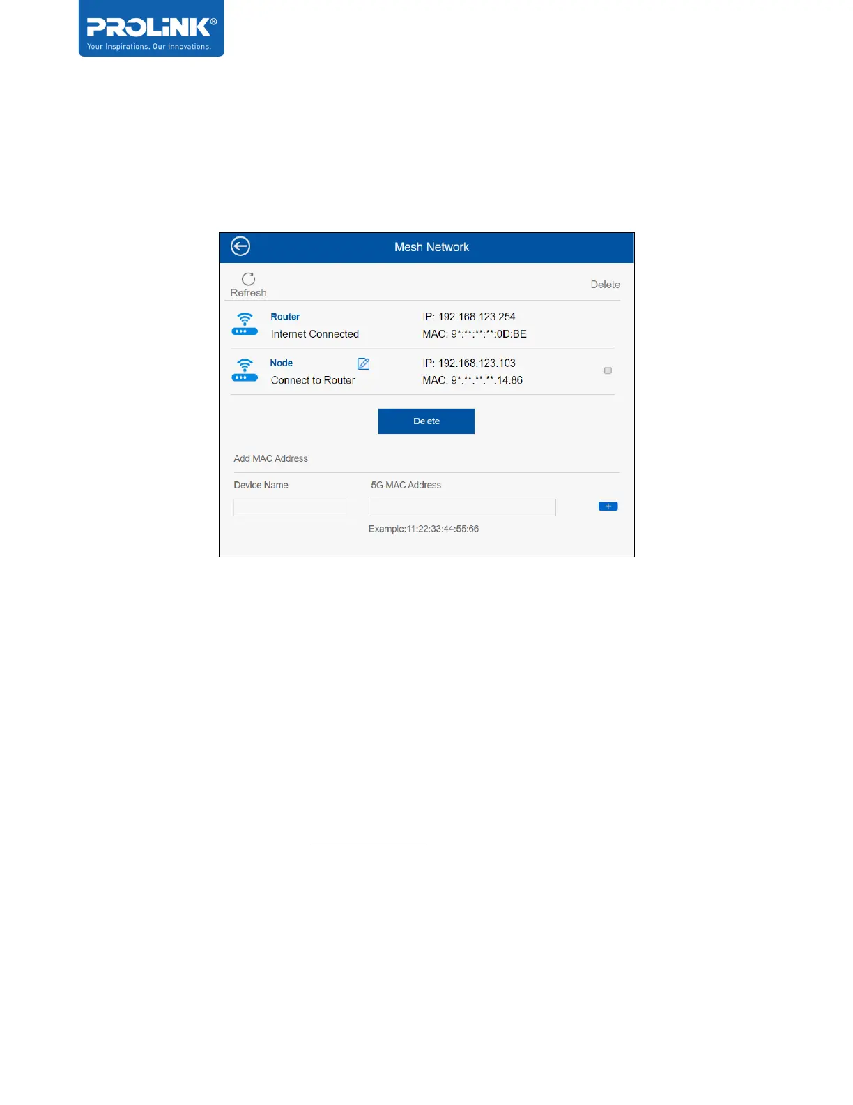 On this option, user can manage by adding or delete the current Mesh Node and get the