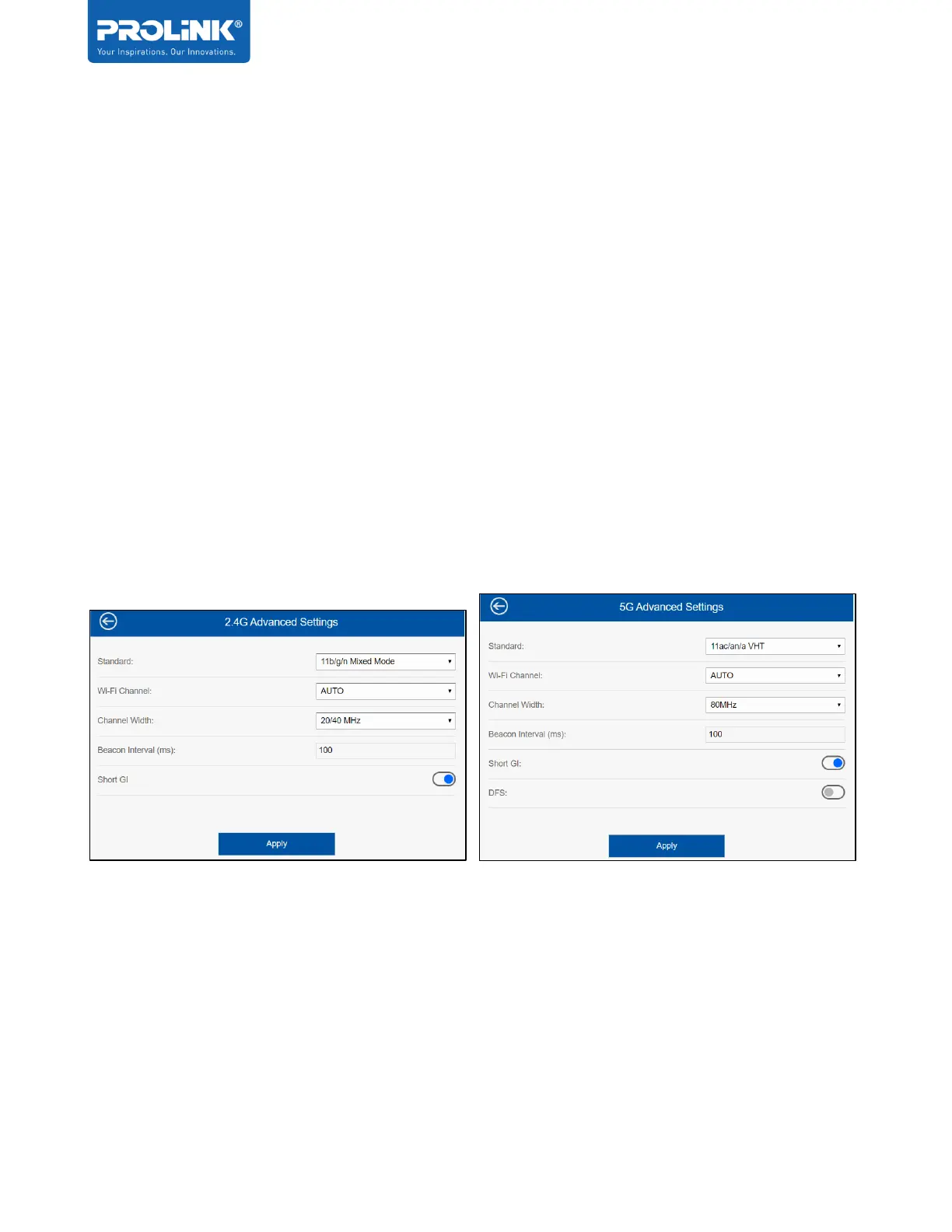 PROLiNK PRC2402M - Advanced Wireless Settings