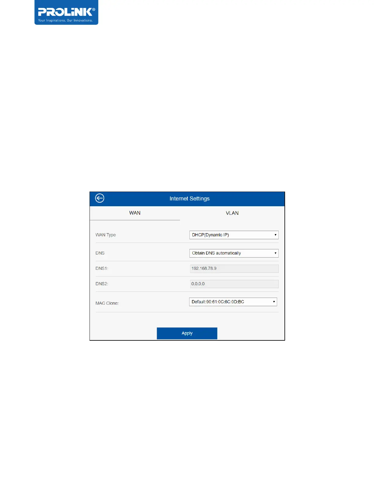 advanced user to configure, by default the WAN type is set to DHCP and Obtain DNS