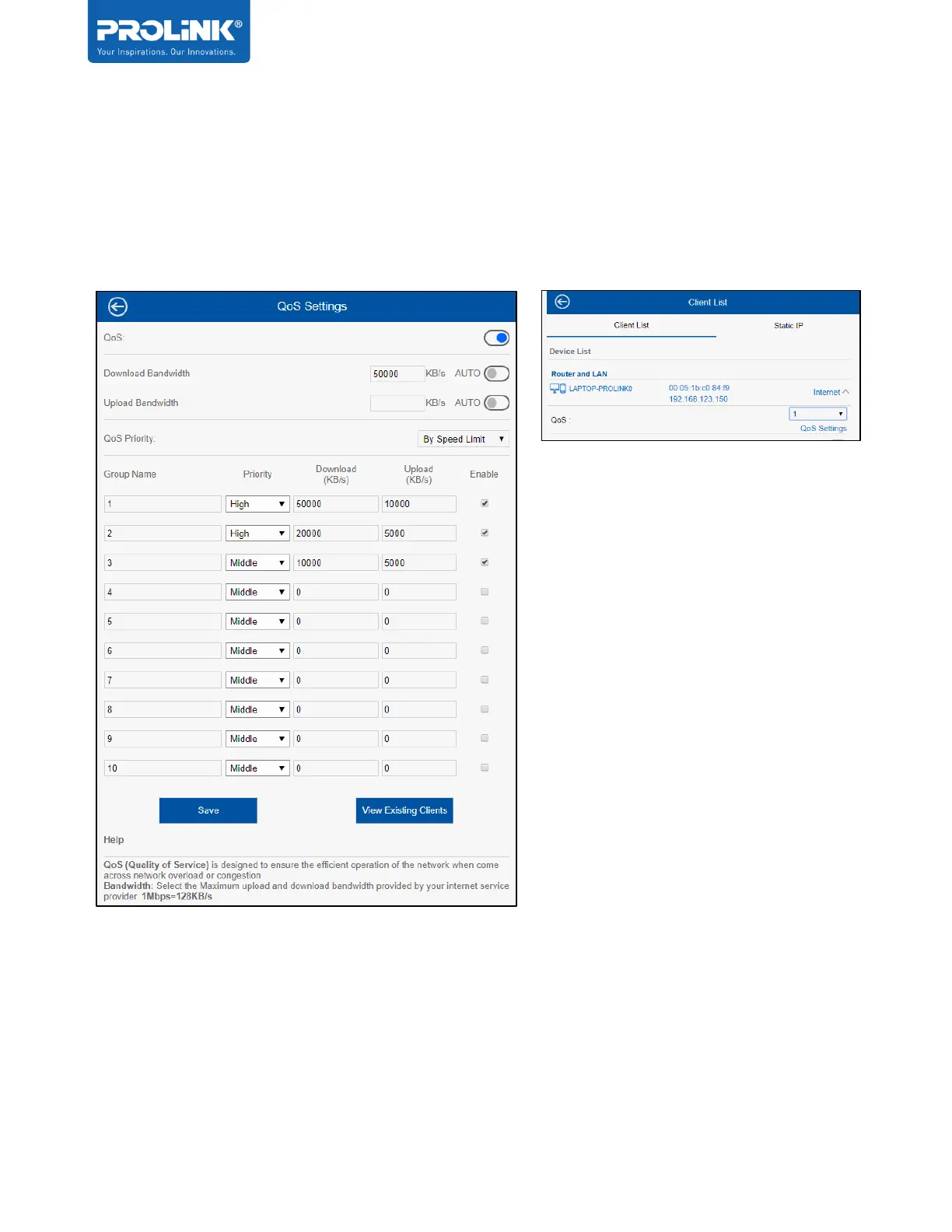 base your need for each connected client. By enabling QoS, user can set specific Upload and