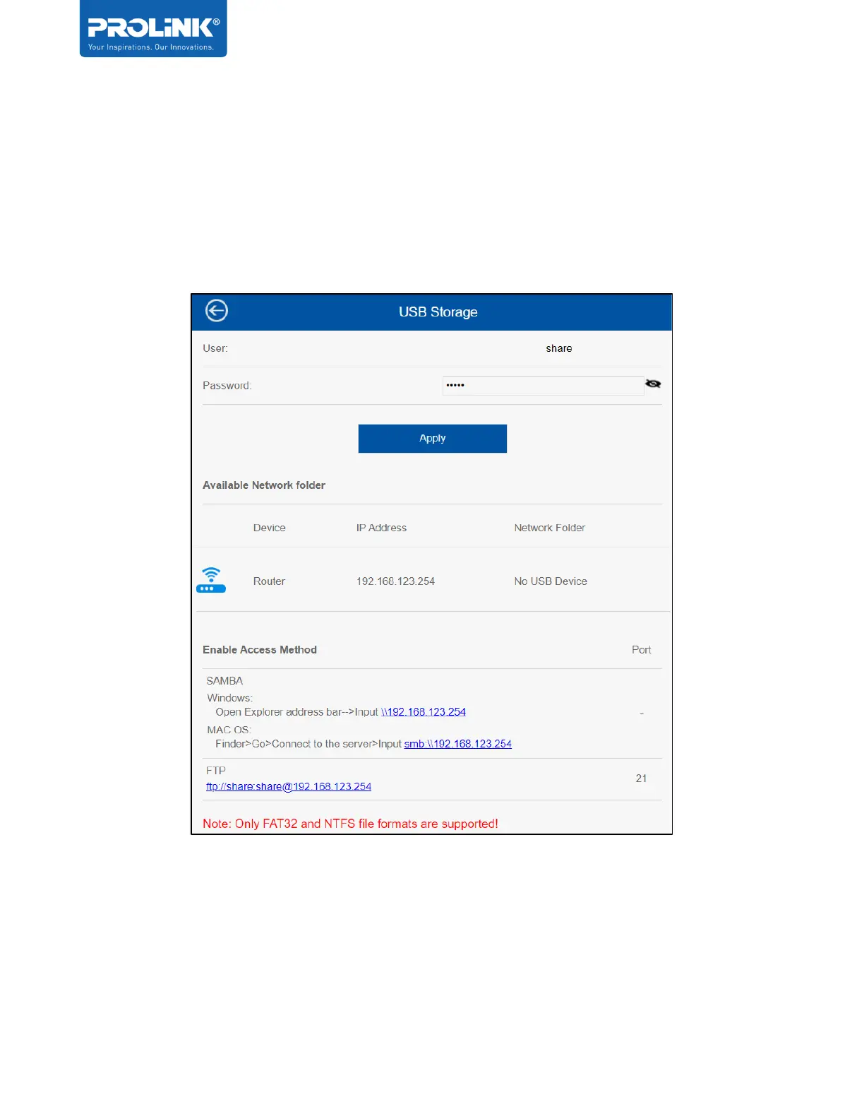 the same network. By plugging in an USB drive, this feature is automatically enabled.