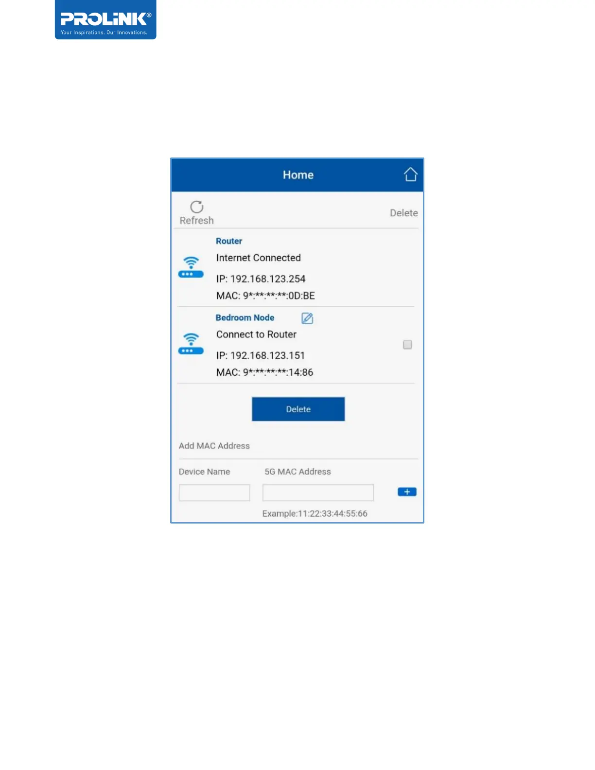 3. Enter the device name and add the 5G MAC address of the PRC2402M. the