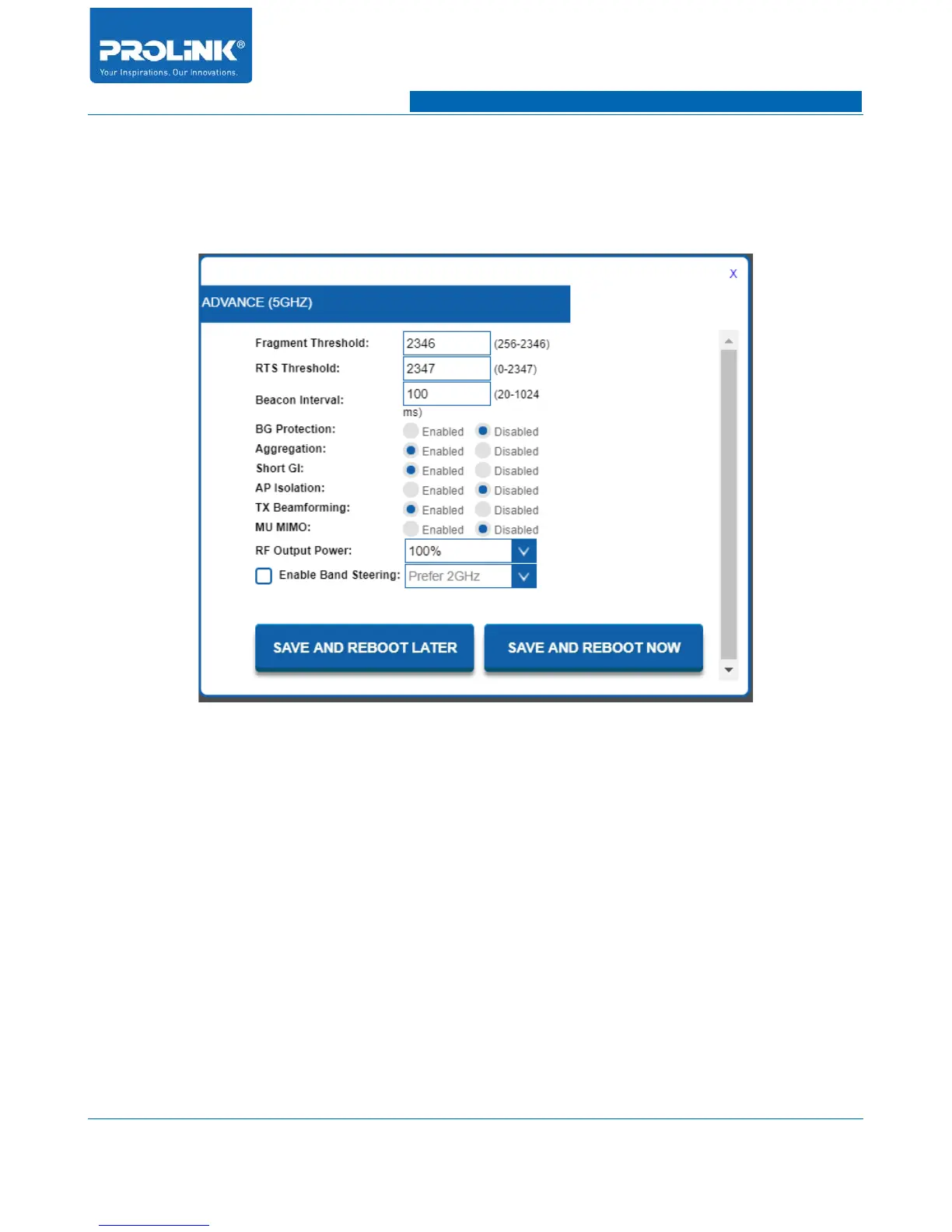 • Beacon Interval: Enter a value between 20-1000 milliseconds for Beacon Interval here. The